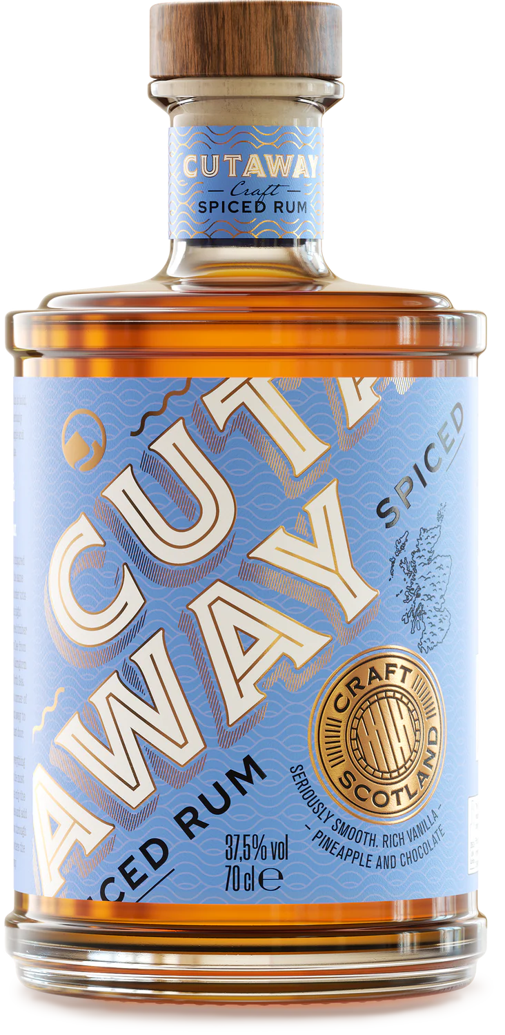Cutaway Rum is inspired by a no-nonsense inn of the same name, where loggers would order tots of rum and shelter for the night. These tough characters steered timber down the length of the river Dee from forests on the slopes of the Cairngorm mountains to the stormy North Sea. The inn was renamed after a corner of the building was literally cut away to build a railway line right next door.