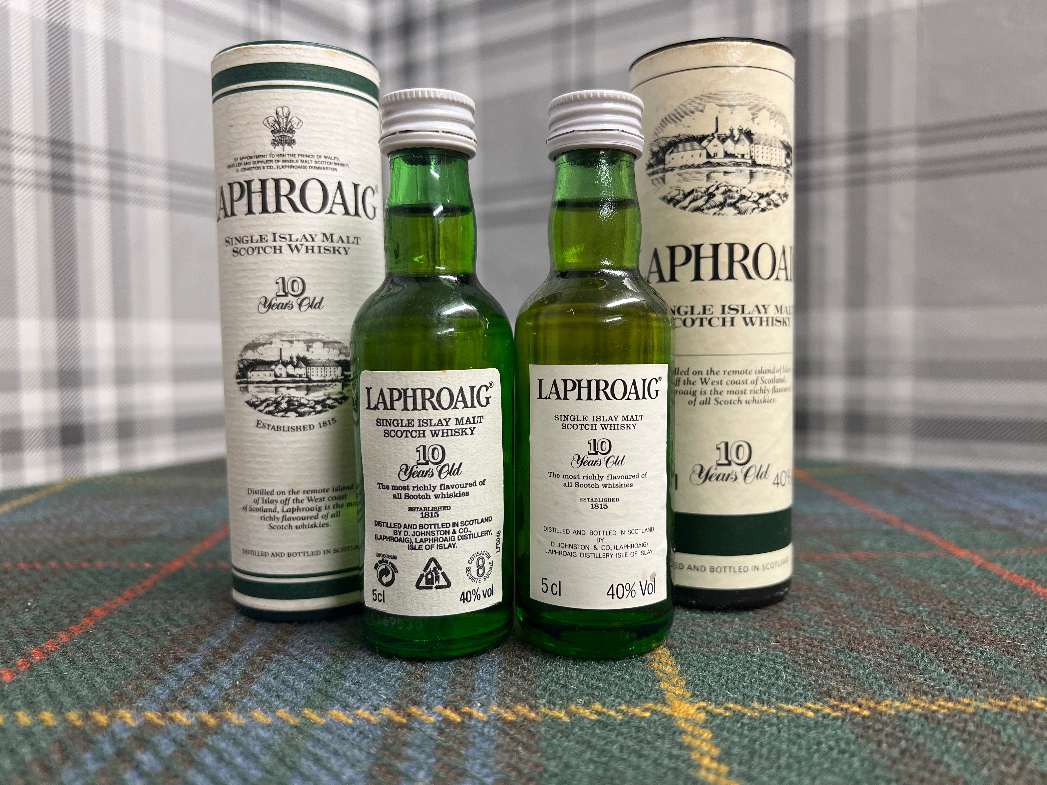 Highly collectable Laphroaig 10 Year Old Year Old Miniatures c/w Tubes
